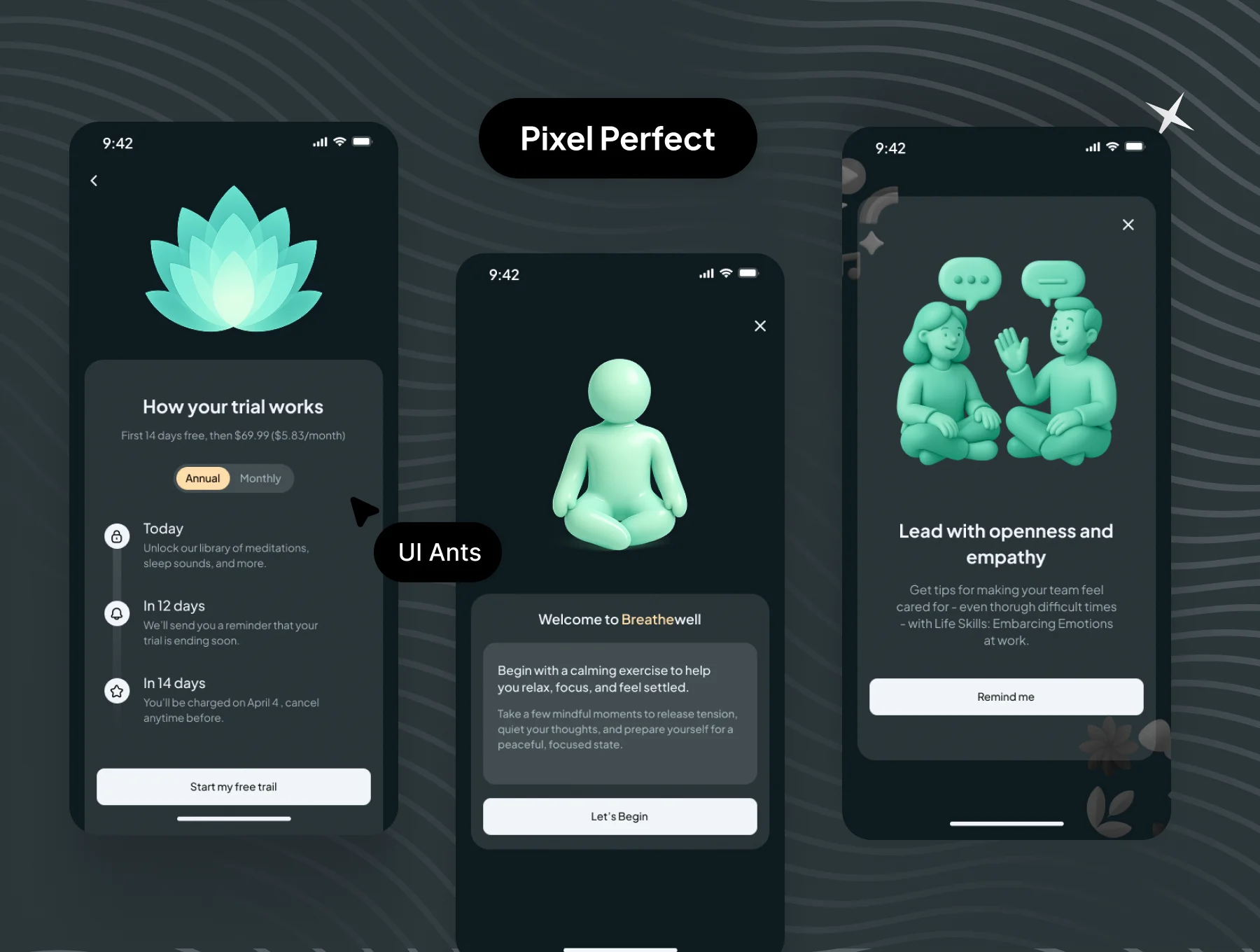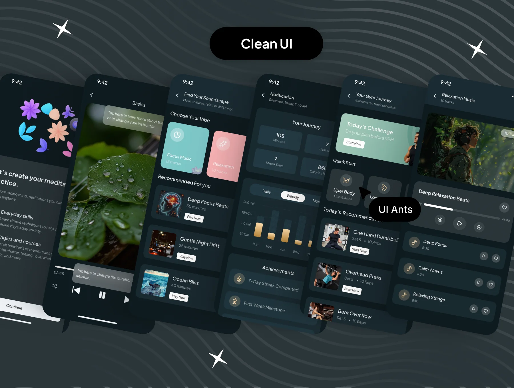 Introducing the Meditation App UI Kit – a calm, modern, and thoughtfully crafted design system created to promote mindfulness, relaxation, and overall well-being. With 100+ pixel-perfect screens and 42+ reusable components, this UI kit helps you build a complete meditation, yoga, and fitness experience. From guided sessions and music courses to progress tracking and reminders, every screen is designed to support healthy habits in a peaceful and distraction-free environment.