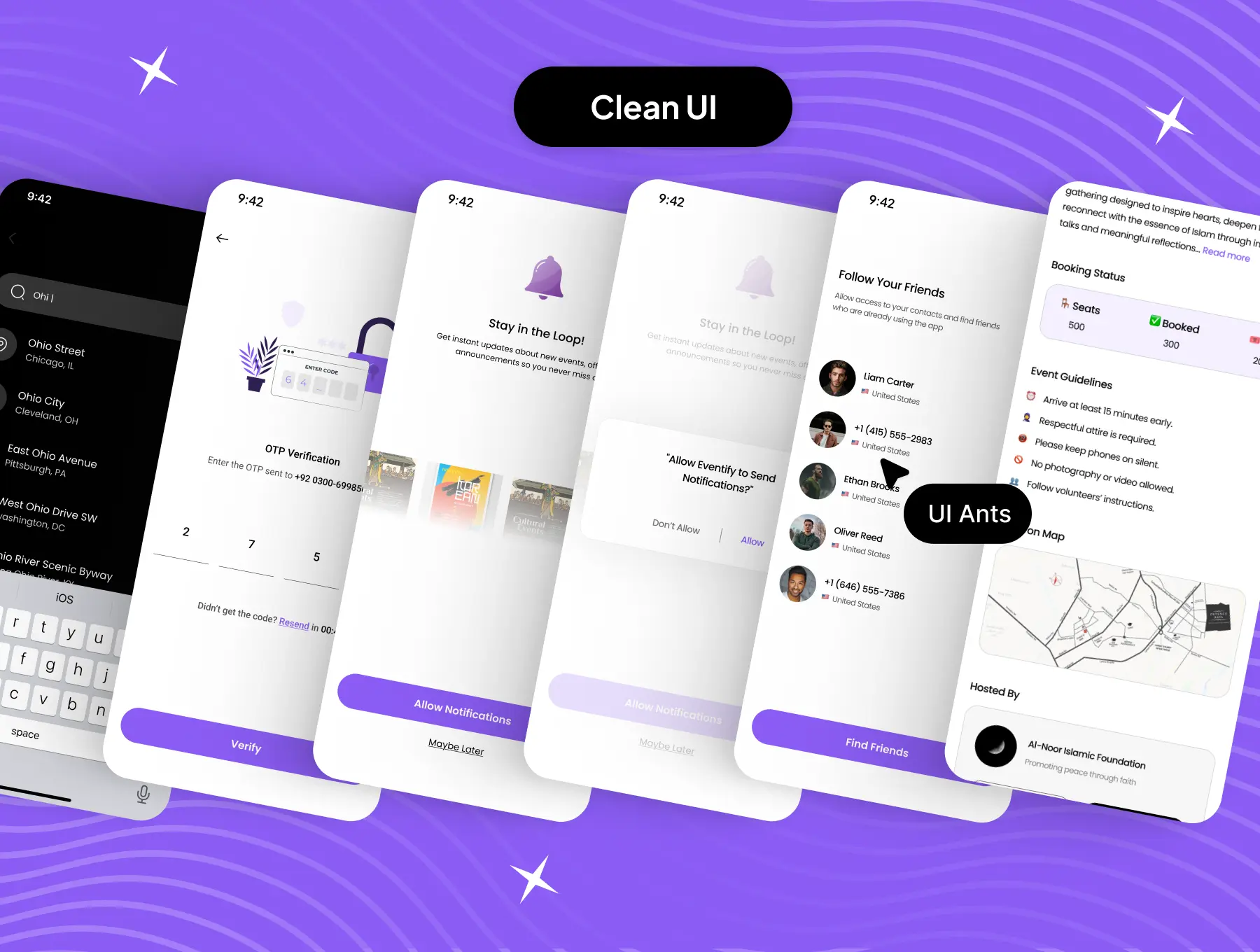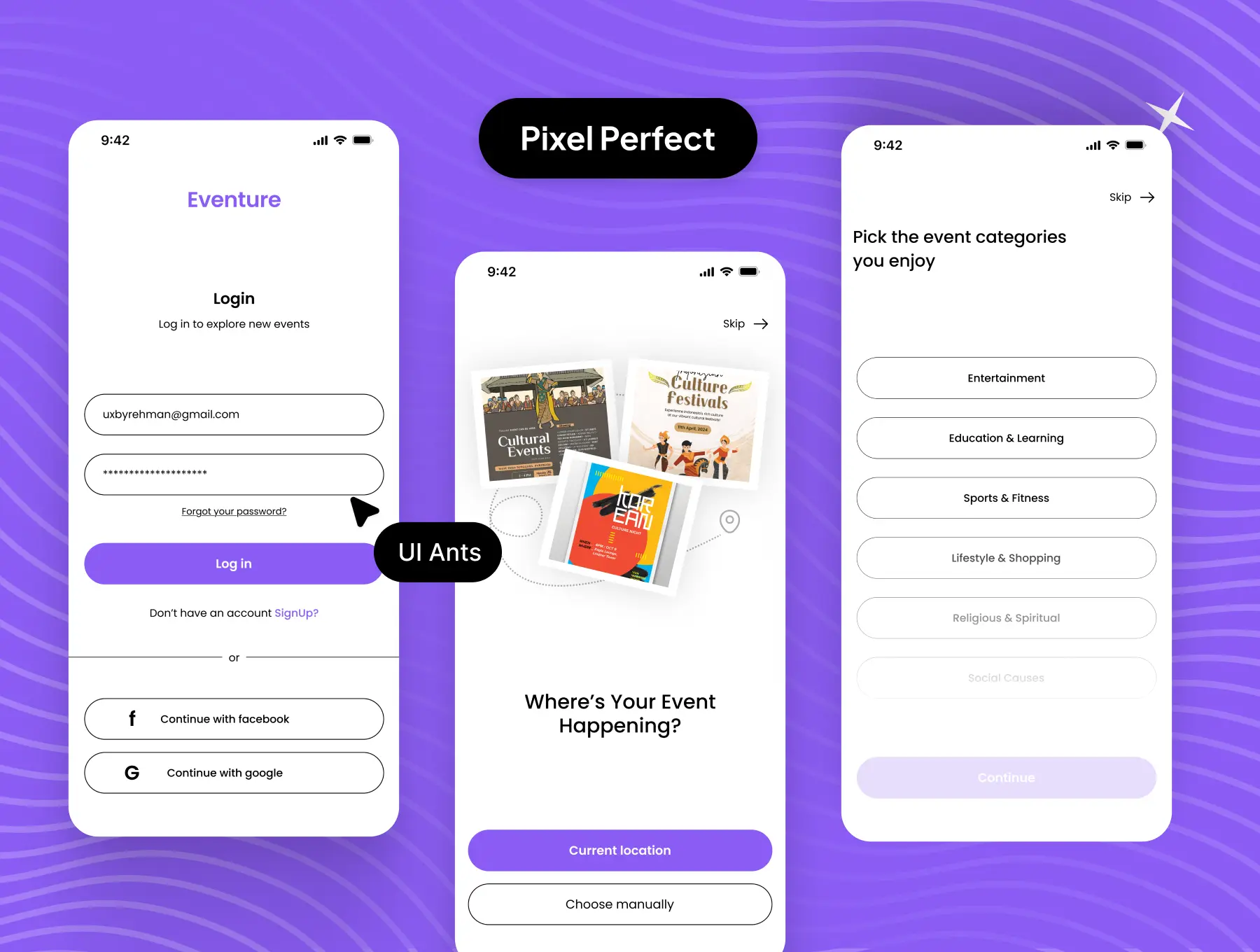 Built for flexibility and performance, the Event Booking UI Kit features sleek layouts, interactive flows, and modern visual design — making it the perfect foundation for any app that connects users with concerts, festivals, workshops, and live experiences.