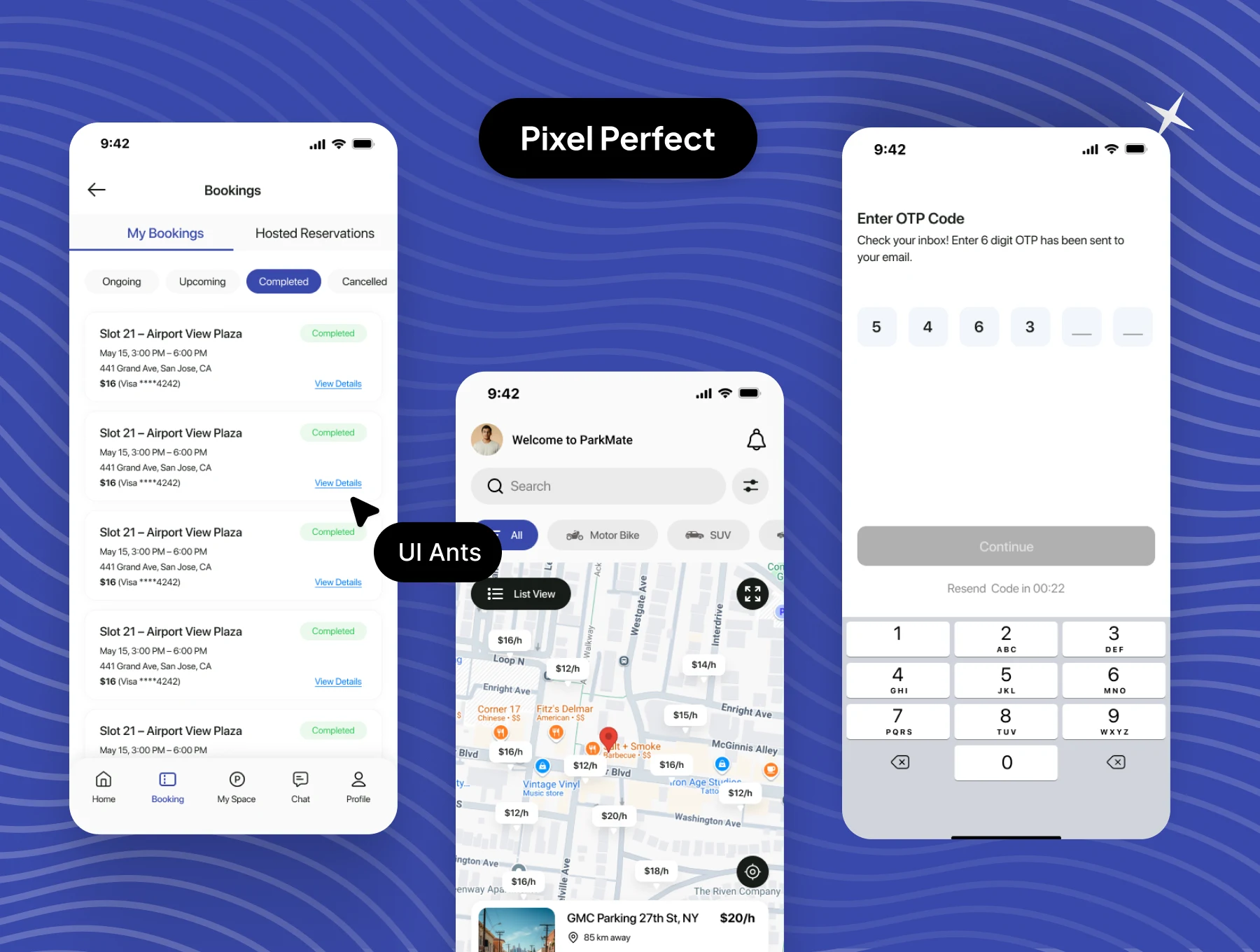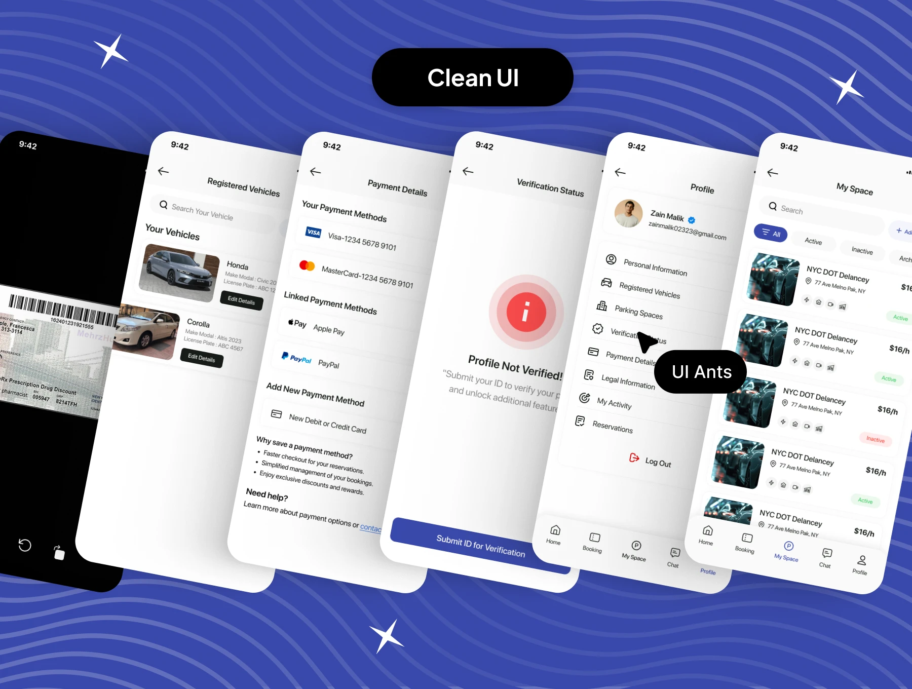 • Comprehensive Design: Covers complete parking flows from discovery to payment