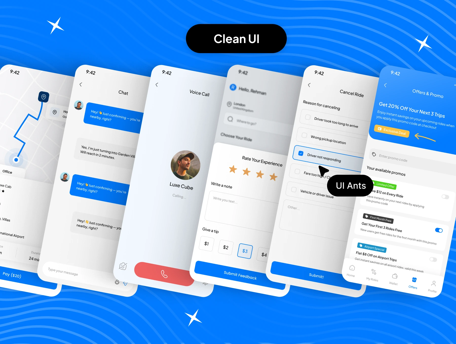 - Dual-Side Coverage: Includes both rider and driver workflows