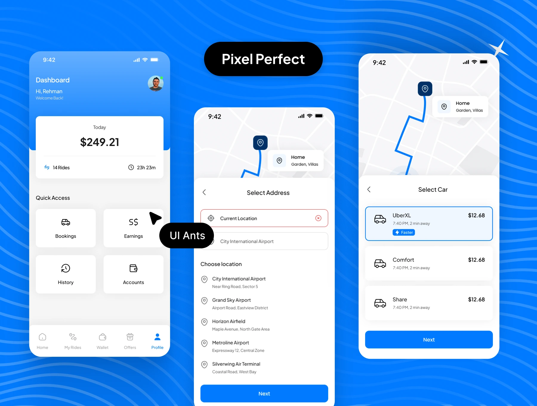 Introducing the Ride Booking App UI Kit – a complete, scalable, and modern design system built for on-demand transportation services. With 100+ pixel-perfect screens and 35+ reusable components, this UI kit supports both user and driver-side experiences. It enables smooth ride booking, real-time communication, secure payments, and efficient ride management. Every screen is designed for clarity, performance, and real-world usability.